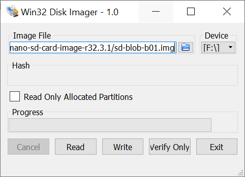 Setelah selesei diunduh, ekstrak file zip hasil unduhan tersebut, kemudian write image yang berekstensi img pada microsd card menggunakan aplikasi Etcher atau Win32Disk Imager. Caranya, jalankan aplikasi Win32 Disk Imager sebagai Administrator, dan pastikan microsd sebelumnya telah dimasukkan pada slot komputer laptop dan terbaca pada sistem operasi.