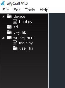 Berikut tampilan uPyCraft IDE, sebagaimana yang telah diunduh dan dijalankan pada tulisan sebelumnya