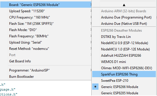 - Flash Size: 1M (256K SPIFFS)