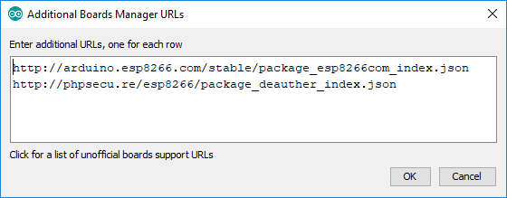 - http://arduino.esp8266.com/stable/package_esp8266com_index.json