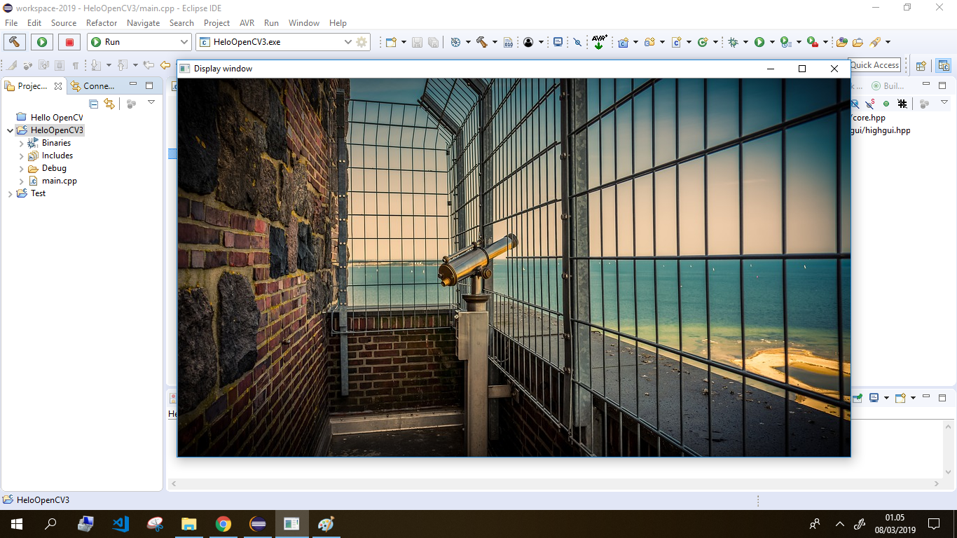 Selamat, kini program pertama menggunakan OpenCV menggunakan MinGW dan Eclipse CDT telah berhasil dibuat. Selanjutnya, selain menggunakan Visual Studio pembaca dapat mengikuti seri tutorial OpenCV lainnya pada embeddednesia menggunakan Eclipse dan MinGW sebagaimana yang telah dijelaskan dalam dua bagian tulisan ini.
