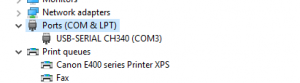Pastikan sebelumnya anda telah menginstal driver serial to usb berdasarkan chip serial yang digunakan masing – masing board. Anda bisa memastikannya dengan melihat port serial yang terbaca pada Device Manager. Pada komputer penulis, terbaca di COM3.