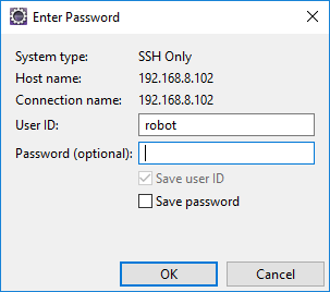 Sebuah kotak dialog ssh akan tampil menanyakan user dan password. Isi dengan user dan password Raspberry Pi, lalu klik OK