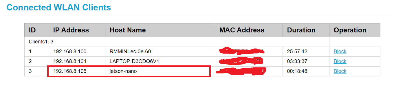 Setelah selesei, reboot Jetson Nano, lalu cari di IP berapa Jetson Nano terhubung dengan jaringan LAN, untuk melakukan ini, pengguna dapat login pada aplikasi admin pada router yang digunakan lalu melihat perangkat mana saja yang terhubung