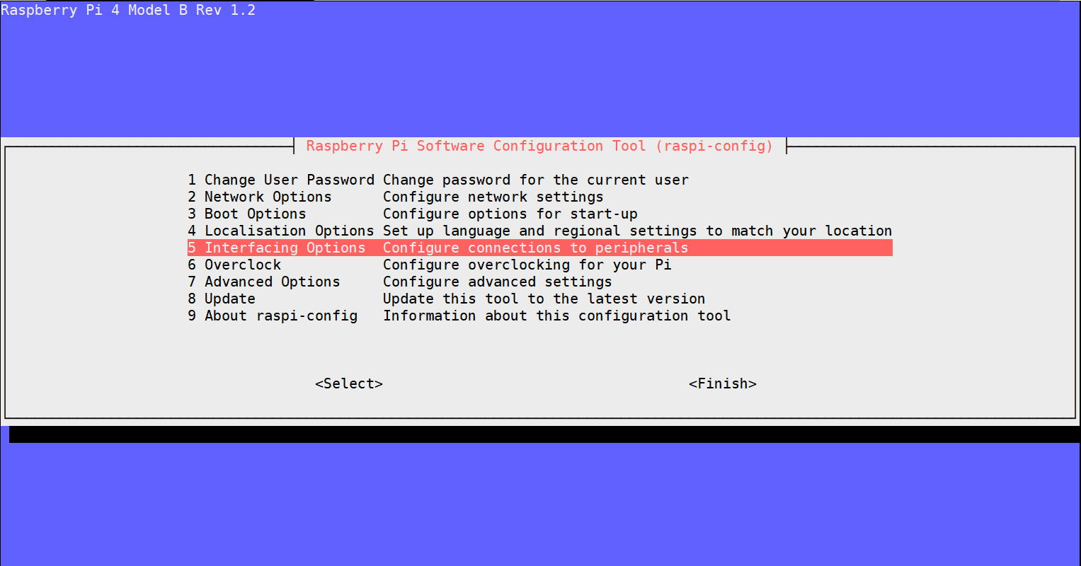 [/simterm]Saat menu Raspi Config terbuka pilih 5. Interfacing Options