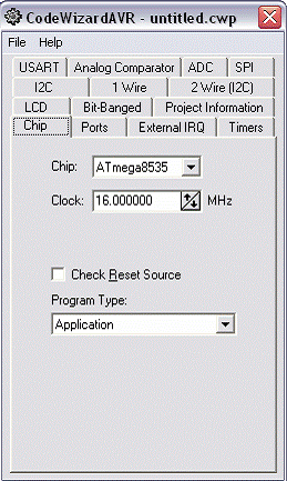 3. Pilih chip yang akan digunakan ATMEGA8535 atau sesuaikan dengan mikrokontroler yang anda gunakan atur harga clock 16 Mhz atau sesuai dengan kristal yang anda gunakan