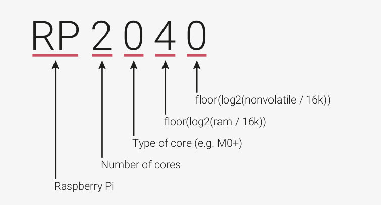 Jadi misalnya jika nanti suatu saat Raspberry Pi Foundation memutuskan membuat sebuah mikrokontroler dengan satu inti prosesor Cortex-M4 dengan 246KB SRAM dan 256KB penyimpanan flash, boleh jadi nanti namanya adalah RP14444.