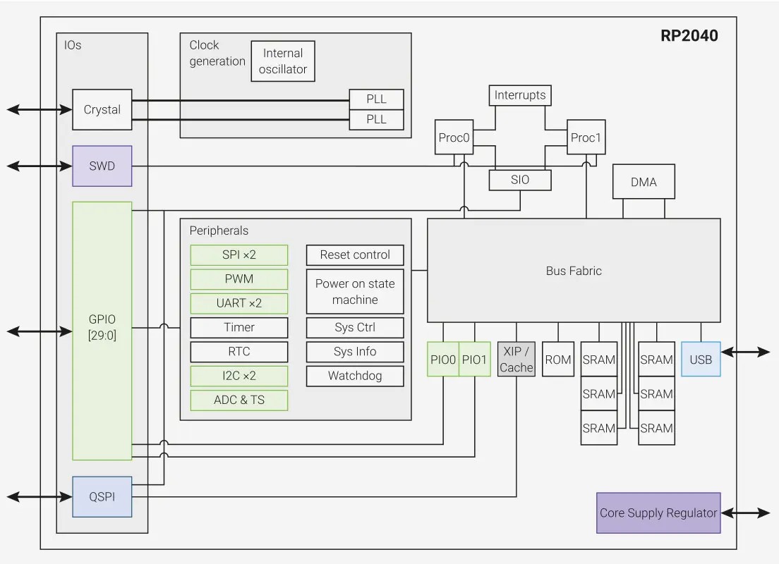 Berikut adalah diagram arsitektur dari mikrokontroler RP2040