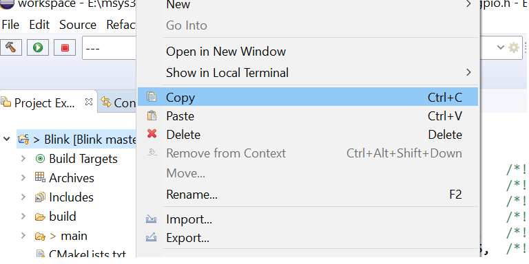 Cara lain yang lebih cepat adalah, membuat project baru dari project Blink di tulisan sebelumnya. Tinggal copy paste saja project tersebut dengan klik kanan pada direktori project, lalu pilih copy dan paste di Panel Project Explorer. Beri nama project tersebut, misalnya Multitask.