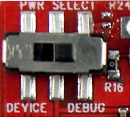 juga atur switch PWR SELECT pada posisi DEBUG